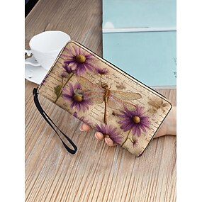 Женский кошелек из искусственной кожи с различными узорами в виде стрекоз, вместительный, с множеством отделений, идеально подходит для повседневного использования, отдыха и путешествий.