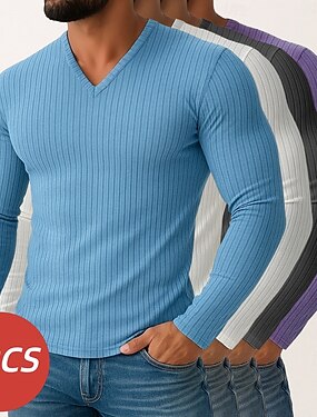 Муж. Футболка Мускулистая рубашка Трикотажная футболка в рубчик Рубашка с длинным рукавом Длинный рукав V-образный вырез Весна Осень Зима Полотняное плетение Пит Стрип