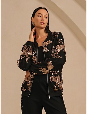 женская куртка-бомбер с круглым вырезом и пайетками для вечеринок, отпуска, осени и зимы