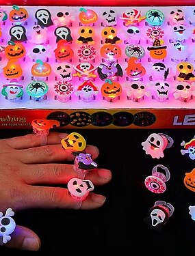 40 шт. светящиеся в темноте кольца на Хэллоуин - зловещие тыквы черепа и летучие мыши батарейное освещение для вечеринок украшений и празднования интересные пластиковые аксессуары рождественский