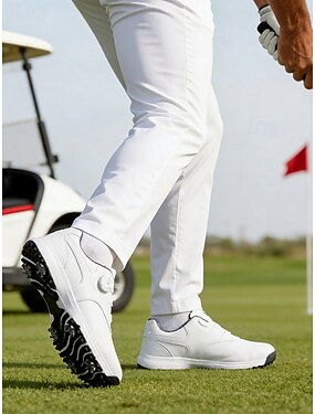 Белые мужские туфли для гольфа, удобные и дышащие, стильный дизайн, идеально подходят для игры в гольф или для тех, кто интересуется гольфом.
