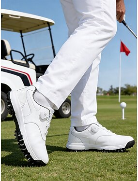 Мужские туфли для гольфа с регулируемой системой затяжки Boa – высококачественная искусственная кожа, стильный белый дизайн для гольфа и занятий спортом на открытом воздухе.