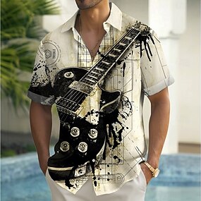 Муж. Boardmasters Гитара Музыкальный инструмент Рубашка Летняя рубашка Кнопка рубашка С короткими рукавами Винтаж Ретро на открытом воздухе Отпуск На каждый день Лето Весна Отложной 3D