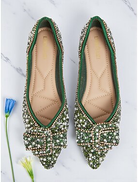 женские зеленые туфли со стразами и жемчугом — туфли с острым носком и пряжкой для коктейльных вечеринок &вечерние мероприятия