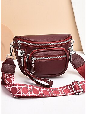 Женская сумка-мессенджер из искусственной кожи бордового цвета с несколькими карманами на молнии, широким ремнем и серебристой фурнитурой. Стильная дорожная сумка с функцией hands-free для повседневной носки и рождественских нарядов.