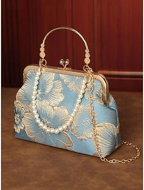 Элегантная женская сумочка-клатч с жемчужной ручкой — цветочный вышитый дизайн с золотой отделкой, разноцветные варианты, идеально подходит для свадеб, вечеринок и торжественных мероприятий