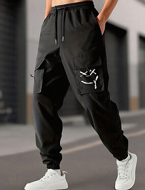 Муж. Брюки карго Бегун Штаны Кулиска Эластичная талия С принтом Мультипликация Улыбающееся лицо Комфорт Для спорта и активного отдыха Повседневные Мода На каждый день Черный Слабоэластичная
