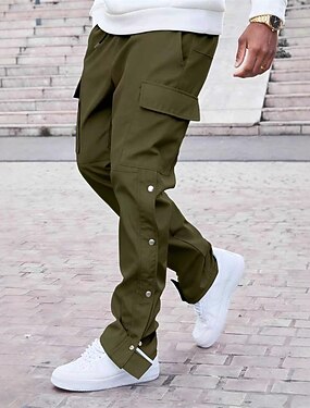 Муж. Брюки карго Штаны Пуговицы Мульти карман Полотняное плетение Пригодно для носки на открытом воздухе Повседневные Отдых и туризм Мода Классика Армейский желтый Светло-зеленый