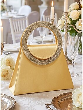 Женская атласная вечерняя сумочка с круглой ручкой, украшенной стразами, доступна в нескольких цветах, с цепочкой для ношения на плече, идеально подходит для свадеб и вечеринок.