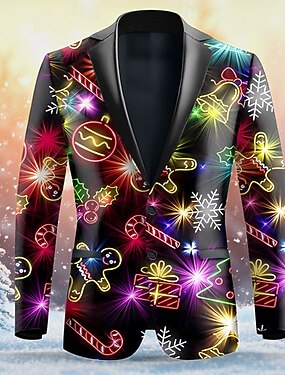 Муж. Блейзер Пальто Рождество на открытом воздухе Для улицы Карман На каждый день Наступила зима 100% полиэстер В снежинку 3D печать Пуговицы Сохраняет тепло Удобный Однобортный крой Блейзер