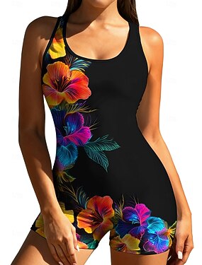 Жен. Стандарт Стандартный Рашгард Купальник с цветочным принтом Купальники танкини тропический Блокировка цвета 2 предм Съёмные вставки Бойлег УФ-защита от солнца UPF50+ Эластичный Без рукавов
