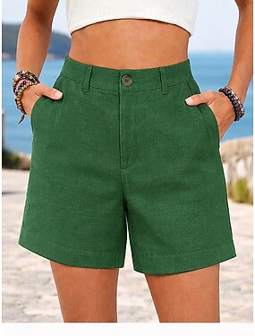 Жен. Искусственный хлопок и лен Чино Шорты Отпуск Мода Уличный стиль Короткие Завышенная Полотняное плетение Карман удобный Мягкий Удобный Неэластичная на открытом воздухе Для улицы