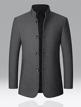 Муж. Бушлат Тренч Отпуск Повседневные Осень Зима Полиэстер С защитой от ветра Верхняя одежда Одежда Мода Классика Полотняное плетение Карман Воротник-стойка Однобортный крой