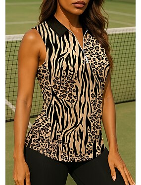 Жен. Геометрический принт Спортивная рубашка Футболка-поло Теннисная рубашка Без рукавов Молния Цветочный UPF50+ Устойчивость к УФ Эластичность Влагоотводящие Дышащий Теннис Гольф Пиклбол