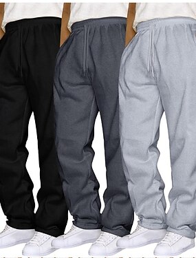 Комплект из 3 мужских спортивных штанов, широкие брюки, спортивные штаны с открытым низом, эластичный пояс на шнурке, несколько пар, простые, дышащие, полной длины, для спорта на открытом воздухе,