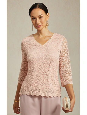 Жен. Блуза Нарядные Топы Кружева Пэчворк Многослойный Полотняное плетение Элегантный стиль Рукав до локтя Вырез под горло Обычные топы Повседневные Свадебный гость Румяно-розовый Лето Весна