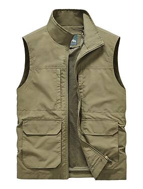 Муж. Жилет для рыбалки Жилет без рукавов на открытом воздухе Современный современный Все сезоны Мульти карман Чинлон На открытом воздухе Сплошной/однотонный цвет Молния Воротник-стойка