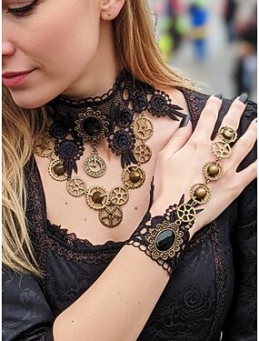 Женская чокер-ожерелье и браслет в стиле стимпанк с кружевом черного цвета – подвеска в виде шестеренки и часов для готического косплея карнавала и костюмов на Хэллоуин