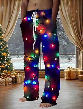 Новогодняя тематика Муж. Флисовые спортивные штаны Эластичная талия на шнурке Вечерние наряды Карман Термальные Зима 3D печать Multi Color