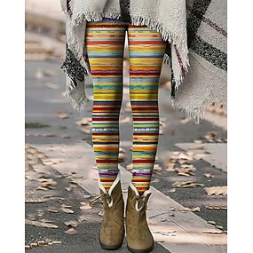 Жен. Брюки Леггинсы Уютные леггинсы Уличный стиль На каждый день Полная длина Завышенная Полоски Эластичная талия С принтом Воздухопроницаемость Удобный Эластичная Отпуск Для улицы На каждый день