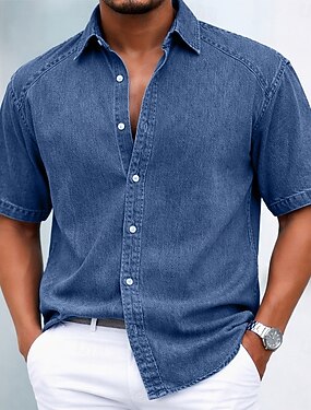 Муж. Рубашка Повседневная рубашка Кнопка рубашка Рубашка из 100% хлопка с кислотной стиркой Рубашка с кислотной стиркой Черный Белый Светло-зеленый Бордовый Темно синий С короткими рукавами