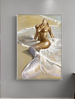 ручная роспись маслом холст настенное искусство украшение современная фигура портрет нагота пляж русалка для домашнего декора свернутая бескаркасная нерастянутая картина