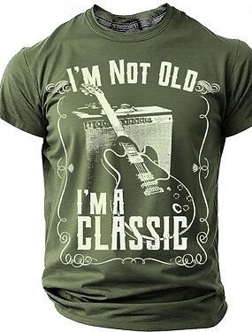 Мужская футболка с надписью "Я не старый, я классический усилитель для электрогитары", винтажная, ретро, в стиле рок-н-ролл, забавная, с графическим принтом, стандартного кроя, повседневная, для