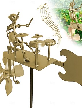 Ручная работа, металлический барабанщик, ветряная мельница, садовая вертушка, музыкальная металлическая духовая скульптура с дизайном гитары, украшение для лужайки на открытом воздухе,