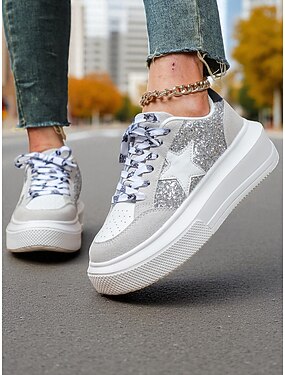 Женские кроссовки на платформе с блестками и звездами — красно-белые, массивные, повседневные туфли на шнуровке с отделкой из блестящих пайеток для уличного стиля и путешествий &фестивали