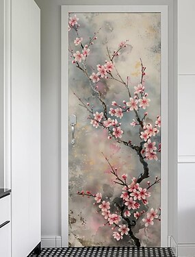 цветущая сакура, стиль акварельной живописи, цветы, ветка дерева, дверной баннер, настенный гобелен, минималистичный дзен-декор, декор для ванной комнаты, спальни, прихожей, украшение для внутреннего