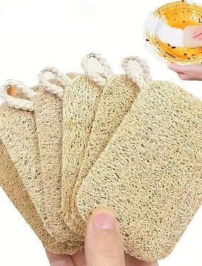 Набор из 5 натуральных чистящих губок, мочалка из люфы, кухонная тряпка для уборки, натуральная морская губка, щетка для глубокой чистки душа с крючком для подвешивания на кухне. &использование ванной