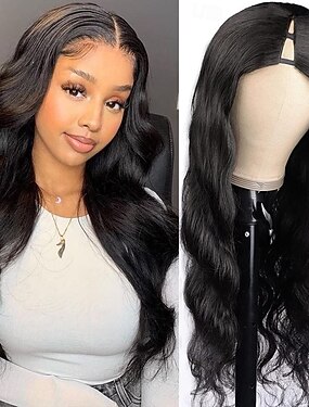 Натуральные волосы Парик U часть Естественные кудри U часть Черный Естественный цвет Женский Мягкость Легко туалетный Машинное плетение Без шапочки-основы Бразильские волосы Универсальные Черный 8