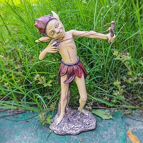 Статуэтка эльфа-рогатки из смолы для сада, фигурка гнома для улицы, забавный миниатюрный декор для фей, украшение для микроландшафта, подарок для украшения дома