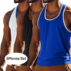 Муж. Безрукавка Жилет Майки Без рукавов U-образный вырез Глубокий круглый вырез Лето Сплошной цвет Полотняное плетение Мода Спортивные Классика 3 предм Цветовые блоки Мульти-упаковка