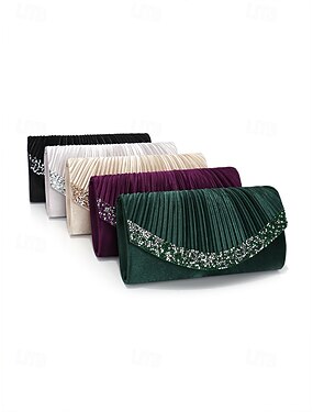 Вечерняя сумочка-клатч для женщин, украшенная стразами, изготовлена из полиэстера, многоцветная, с плиссировкой и цепочкой, идеально подходит для свадеб, вечеринок и торжественных мероприятий.