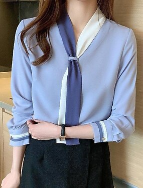 Жен. Рубашка Топы из шифона Контрастных цветов Элегантный стиль Стиль Формальная Длинный рукав галстук-шея Обычные топы Офис Повседневные Праздники галстук спереди Белый Желтый Синий Весна Осень