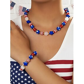 Патриотический женский набор украшений из смоляных бусин: ожерелье и браслет, посвященный 250-летию США, Дню независимости, для повседневной носки и путешествий.
