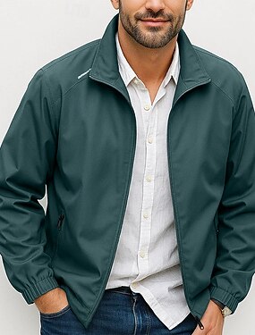 Муж. Легкая куртка Летняя куртка Куртка бомбер Ветровка Отпуск Повседневные Износостойкий Карман Весна Осень Полотняное плетение Мода Классика Воротник-стойка Обычная