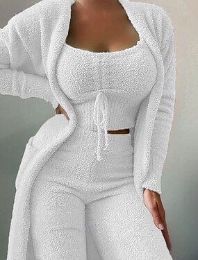 Жен. Пижамы Домашняя одежда пижама Теплый Мода На каждый день Чистый цвет Эластичная талия Брюки Отпуск Дом Длинный рукав Вырез под горло Черный Белый Розовый Красный Верблюжий Осень Зима