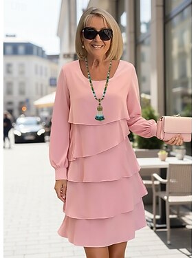 Жен. Мини-платье Коктейльные платья Свадебное платье для гостей Шифоновые платья Многоярусное платье Элегантный стиль Для вечеринок Свидание На выход Стандартный Чистый цвет С короткими рукавами
