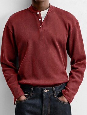 Муж. Вафельная рубашка Henley Футболки Длинный рукав Сплошной цвет Полотняное плетение Мода Оригинальный рисунок На каждый день Пуговицы Хенли на открытом воздухе Повседневные Лето Осень Зима