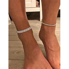 Женский браслет на лодыжку с кристаллами и стразами, изготовлен из сплава, доступен в нескольких вариантах ширины, элегантный сверкающий стиль, идеально подходит для свадеб, вечеринок, вечерних мероприятий и торжественных случаев.
