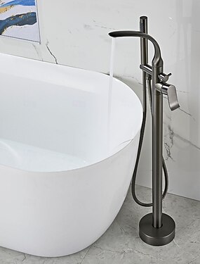 смеситель для ванны водопад длинный носик смесители для наполнения ванны золотой с удерживаемым ручным душем 60-дюймовый шланг, 3 отверстия 2 ручки на бортике широко распространенная ванная комната