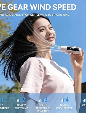 Турбовентилятор, портативный мини-вентилятор с 5 скоростями и светодиодным индикатором заряда батареи, с креплением на пояс и функцией фонарика, зарядка через Type-C, идеально подходит для