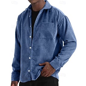 Муж. Рубашка Летняя рубашка Повседневная рубашка Пляжная рубашка Вельветовая рубашка Кнопка рубашка Черный Белый Светло-зеленый Красный Темно синий Длинный рукав Сплошной цвет Лацкан
