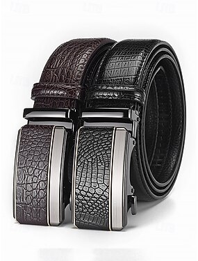 Мужской ремень из искусственной кожи с крокодиловым узором – регулируемый ремень с автоматической пряжкой для деловых, повседневных и повседневных образов