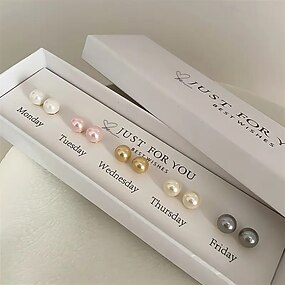 Подарочный набор из 5 пар серег-гвоздиков с искусственным жемчугом, элегантные и роскошные, комбинируемые повседневные серьги для ношения с понедельника по пятницу