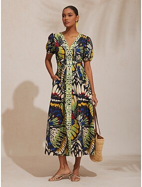 макси-платье из льна с эффектом воздушной ткани и бабочки в джунглях