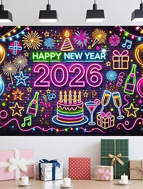 Новый год гобелен Крышка гаражной двери Большое Подвесное с Новым Годом 2026 г. Фейерверк Симпатичные Стиль 3D Вечеринка На открытом воздухе Праздник Фоны для съемки Ярд (0,9 м) Домашний декор