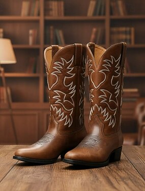 Мужские винтажные ковбойские сапоги из искусственной кожи коричневого и черного цвета с замысловатой вышивкой — прочные и стильные для родео и повседневной носки.